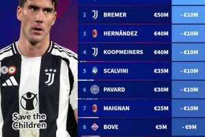 1、弗拉霍維奇(尤文,4500萬(wàn)歐)-1500萬(wàn)歐