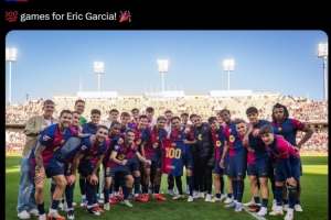 本場比賽埃里克-加西亞首發(fā)登場,這是他加盟巴薩以來各項(xiàng)賽事第100次出場,賽后他也獲贈(zèng)球隊(duì)100號定制球衣,并與全隊(duì)球員合影留念。