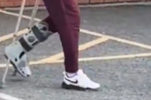 據(jù)賽后球迷拍到的畫面,哈蘭德拄拐離開球場,并且腳上穿著保護靴。