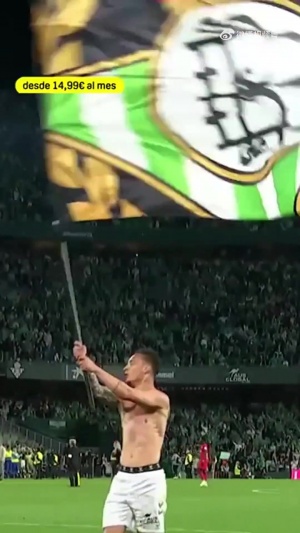 貝蒂斯德比戰(zhàn)勝塞維利亞后,安東尼揮舞旗幟與球迷一起慶祝??