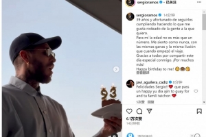 拉莫斯迎來(lái)39歲生日,他在社交媒體上曬出吹蠟燭的視頻,并寫道:“39歲了,我很幸運(yùn)能繼續(xù)做我喜歡的事情,身邊圍繞著我愛的人。”