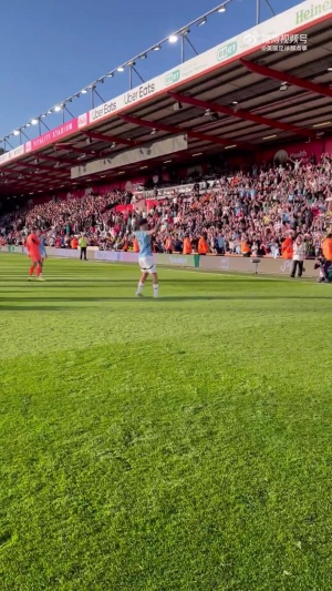 賽后瓜帥把奧賴利推向前接受球迷的歡呼和掌聲??