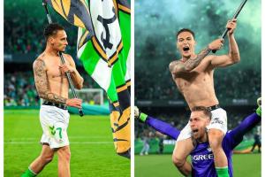 體育資訊03月31日訊 西甲第29輪塞維利亞德比,皇家貝蒂斯主場(chǎng)2-1戰(zhàn)勝塞維利亞。賽后安東尼解鎖生涯名場(chǎng)面,赤身騎在門(mén)將肩上揮舞旗幟。