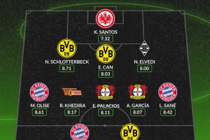 WhoScored德甲第27輪最佳陣容: