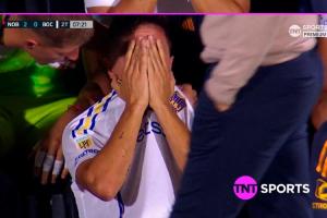 中場(chǎng)休息時(shí),0-2落后的博卡青年換上埃雷拉,但下半場(chǎng)比賽僅進(jìn)行了5分鐘,埃雷拉便捂著腹股溝無(wú)法堅(jiān)持比賽,直接走回了替補(bǔ)席。鏡頭給到埃雷拉時(shí),他在替補(bǔ)席捂臉留下了眼淚。