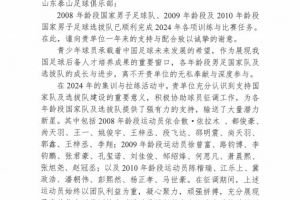 2024年,山東泰山足球俱樂部共向中國足協(xié)各級別國家隊(集訓(xùn)選拔隊)輸送青訓(xùn)球員74人,位居各省市、職業(yè)俱樂部和青訓(xùn)機構(gòu)首位。12月30日,中國足球協(xié)會向山東泰山足球俱樂部致感謝信,對俱樂部大力支持配合完成2008年齡段國家隊和2009、2010年齡段國家選拔隊訓(xùn)練比賽任務(wù)表示感謝。未來,山東泰山足球俱樂部將繼續(xù)深耕青訓(xùn),加強青少年的培養(yǎng),再接再厲,為中國足球貢獻力量。