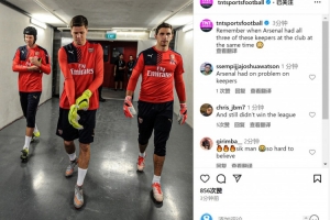 切赫、什琴斯尼、馬丁內(nèi)斯曾在阿森納共事,TNT社媒曬出三名門效力阿森納時(shí)期的合照,配文:“還記得阿森納同時(shí)擁有這三名門將的時(shí)候嗎?”