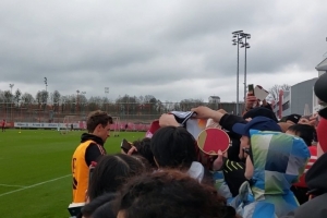 體育資訊4月1日訊 據(jù)記者Nico Linner報道,拜仁的公開訓練后,眾多球迷找穆勒簽名。