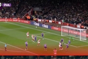 體育資訊4月2日訊?英超第30輪,阿森納vs富勒姆。比賽第37分鐘,恩瓦內(nèi)里倒三角傳球,梅里諾包夾中破門!阿森納1-0領先!