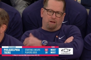 76人本賽季擺出52套首發(fā),聯(lián)盟歷史自1975-1976賽季以來最多;共計使用28名球員。
