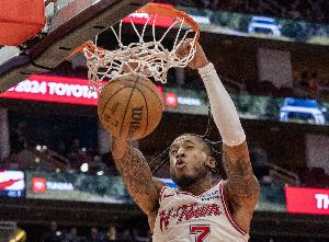 惠特摩爾本場(chǎng)替補(bǔ)出戰(zhàn)24分鐘,9投7中,三分4中3,高效砍下18分,另有3板1助1斷,正負(fù)值+12!