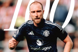 此役是埃里克森為曼聯(lián)出戰(zhàn)的第100場(chǎng)比賽,曼聯(lián)官方社媒曬出海報(bào),祝賀他達(dá)成這一里程碑。