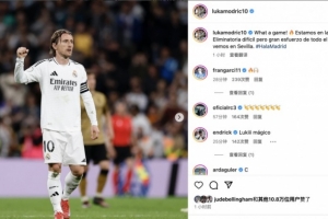莫德里奇發(fā)文慶祝國王杯晉級:多么美妙的比賽,我們進決賽啦!過程太艱難,但是團隊為此付出了巨大的努力,我們?nèi)S利亞見!