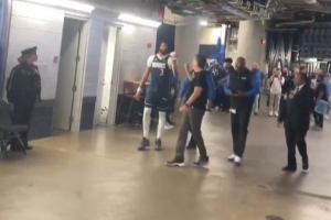 賽后,獨(dú)行俠前老板庫(kù)班來到球員通道找到濃眉,并與其碰拳致意!