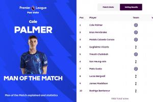 體育資訊4月4日訊 英超第30輪比賽,帕爾默助攻恩佐破門,切爾西主場(chǎng)1-0擊敗熱刺。英超官方宣布,帕爾默當(dāng)選本場(chǎng)比賽全場(chǎng)最佳球員。