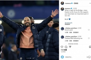 切爾西主帥馬雷斯卡社媒曬出慶祝勝利的照片,配文:“斯坦福橋多么美妙的夜晚,非常感謝大家的支持,你們的支持是我們?nèi)俚闹匾蛩?。藍(lán)軍??”