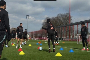 奧利塞和薩內(nèi)等球員進(jìn)行快速傳球練習(xí),內(nèi)容是將球傳過(guò)不同顏色的錐形標(biāo)志,當(dāng)指令用英語(yǔ)發(fā)出時(shí),奧利塞做得很好,但聽(tīng)到“rot”(德語(yǔ)紅色)的指令,他有些不知所措。