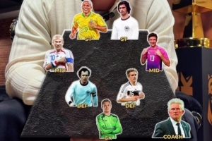 體育資訊4月5日訊 德國(guó)名宿施魏因施泰格評(píng)選了自己心中的夢(mèng)幻七人制足球陣容,羅納爾多&蓋德-穆勒搭檔鋒線,齊達(dá)內(nèi)坐鎮(zhèn)中場(chǎng),貝肯鮑爾鎮(zhèn)守防線。