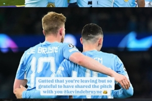 體育資訊4月5日訊 德布勞內(nèi)自宣將在本賽季結(jié)束后離開曼城,隊友福登也在個人社媒曬出與德布勞內(nèi)昔日合影表示懷念。