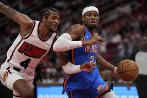目前,雷霆和火箭的勝場差是13.5個(gè),和火箭與西部第十(國王)的勝場差一樣。