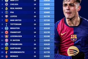 體育資訊4月5日訊 德轉(zhuǎn)盤點了五大聯(lián)賽球隊中,所有U23球員身價最貴榜單,其中巴薩12位U23球員身價之和達到6.15億歐高居榜首,具體榜單如下(隊內(nèi)U23球員人數(shù)+身價之和):
