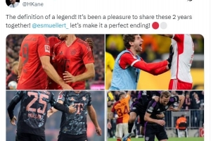 體育資訊4月5日訊 穆勒今日宣布世俱杯后將離隊(duì),結(jié)束25年拜仁生涯,對于穆勒,凱恩也送上了祝福。