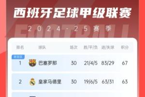 體育資訊04月06日訊 西甲第30輪,巴薩1-1皇家貝蒂斯、皇馬1-2瓦倫西亞。
