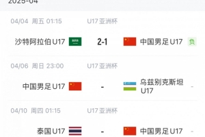 目前在A組積分榜,首輪4-1擊敗泰國國少隊的烏茲別克斯坦國少隊位居榜首,中國國少隊排在第三位。