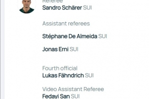 助理裁判:阿爾梅達(瑞士)、喬納斯-埃爾尼(瑞士)