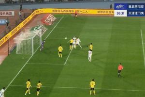 體育資訊04月06日訊 中超第5輪,西海岸vs津門虎比賽第37分鐘,基萊斯力壓后衛(wèi)頭球破門5場轟6球,津門虎2-1再次領先。