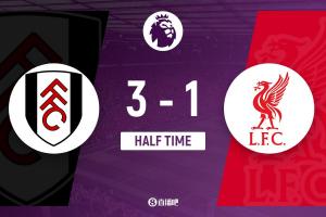 上半場(chǎng)補(bǔ)時(shí)3分鐘,富勒姆3-1利物浦。