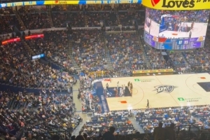 比賽末節(jié)還剩幾分鐘,兩隊(duì)均換上替補(bǔ)陣容,雷霆主場(chǎng)球迷高呼“我們要布朗尼”。