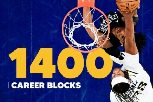比賽首節(jié),特納送出1記蓋帽,職業(yè)生涯蓋帽數(shù)達(dá)到1400個(gè),NBA歷史第46位,現(xiàn)役繼大洛佩斯、濃眉、戈貝爾及小喬丹之后第5位!