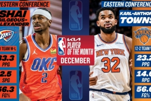 體育資訊1月3日訊?今日NBA官方宣布,雷霆球星亞歷山大和尼克斯球星唐斯分別當(dāng)選為12月西部和東部月最佳球員。