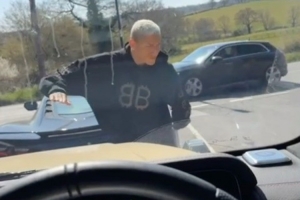 視頻中薩爾按喇叭催促前面的車子快點(diǎn)開走,結(jié)果理查利森從車子里出來怒懟薩爾,他狠狠地拍了一下薩爾的車,并豎起中指。