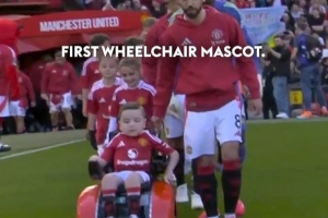 來自貝爾法斯特的7歲小球迷鮑比-費舍爾成為曼聯(lián)俱樂部歷史上首位坐著電動輪椅出場的球童,在德比戰(zhàn)前,他在曼聯(lián)隊長B費的帶領(lǐng)下進入老特拉福德球場。