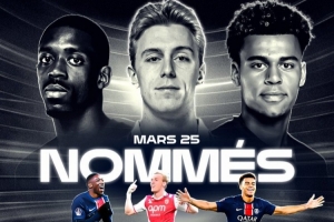 體育資訊4月7日訊 法甲3月最佳球員候選公布,登貝萊、比雷斯、杜埃三名球員獲提名。