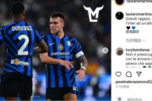 勞塔羅曬出了自己與進球功臣鄧弗里斯的慶祝照,配文寫道:“偉大的小伙子們,我們將國米又帶到了一場決賽?。?!”