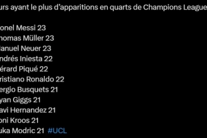 體育資訊4月8日訊 本賽季歐冠1/4決賽即將打響,有媒體統(tǒng)計(jì)了在歐冠歷史上1/4決賽的球員出場(chǎng)次數(shù)。