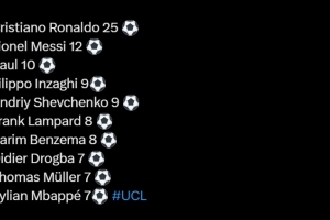 體育資訊4月8日訊 本賽季歐冠1/4決賽即將打響,有媒體統(tǒng)計了在歐冠歷史上1/4決賽的球員進球數(shù)。