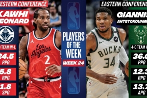 體育資訊4月8日訊 今日NBA官方宣布,快船球星萊昂納德和雄鹿球星字母哥當(dāng)選為上周西部和東部周最佳球員。