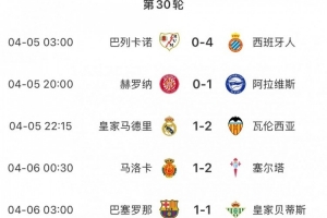 體育資訊4月8日訊 西甲第30輪比賽已經(jīng)全部結(jié)束,本輪10支主場作戰(zhàn)的球隊3平7負無一勝績。