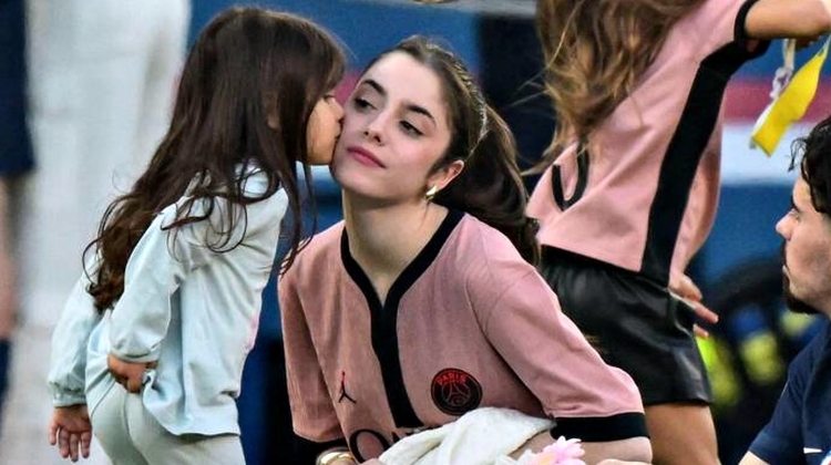 巴黎提前6輪鎖定法甲冠軍,球員們紛紛攜家眷進(jìn)入球場(chǎng)慶祝,其中就包括若奧-內(nèi)維斯的女友和維蒂尼亞的女兒,小女孩見(jiàn)了這位漂亮姐姐都忍不住要上去親一口??