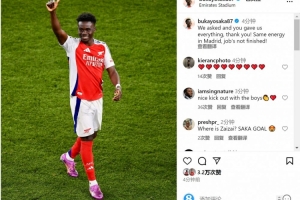 薩卡社媒曬出自己豎起大拇指慶祝的照片,致謝球迷:“我們想要,你們就給了我們一切,謝謝!在馬德里也要保持同樣的能量,任務(wù)還沒有完成!”