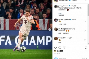 斯坦尼西奇在社交媒體上曬出自己的比賽照片,配文:“我們還沒認輸,次回合全力以赴??”