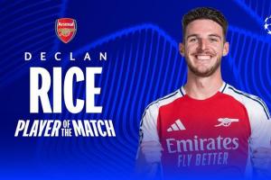 體育資訊4月9日訊 歐冠1/4決賽首回合,阿森納主場(chǎng)3-0完勝皇馬。賴斯在本場(chǎng)比賽任意球梅開(kāi)二度,當(dāng)選全場(chǎng)最佳球員。