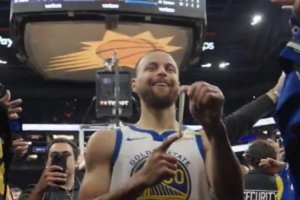 賽后,勇士球星庫里在離場時受到客場觀眾的熱情歡迎,庫里也停下來將腕帶彈到觀眾席,對球迷們的愛給予了回應(yīng)。