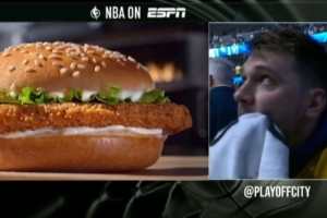 美網(wǎng)友馬上推出惡搞視頻,東契奇看的視頻變成了美食和廣告,場面頗為喜感。