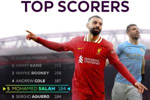 5、=薩拉赫(現(xiàn)役 利物浦):184球