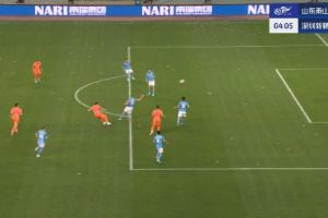 比賽第4分鐘,姜至鵬后場拿球被斷,澤卡一撥,卡扎伊什維利得球后兜射死角破門!泰山1-0領(lǐng)先新鵬城!